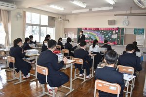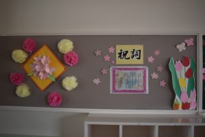 4月11日(月) 今田中学校 第76回入学式を行い、20名の1年生が入学してきました。今田中学校の制服は、今年度の新入生からブレザータイプになります。新しい制服を着た最初の入学生です。いよいよ中学生の生活がスタートします。いろいろなことに挑戦し、たくさん失敗を繰り返し、大きく成長してくれることを楽しみにしています。『自己安全管理』を胸に、3年間元気に過ごしてくれることを願っています。天候にも恵まれ、桜の花が満開の中の入学式でした。2・3年生が趣向を凝らして入学生を歓迎する飾り付けしているなか、胸を躍らせ教室に入りました。入学式の会場であるさぎそうホールの玄関先には、老人クラブ連合会今田支部様よりとっても素敵なお花の贈り物をご用意いただいており、とっても感激しました!!