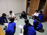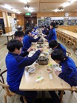 大雪のため到着が遅れ、予定が変更になりました。雪の降る中、最初の実習を行いました。実習終了後、各部屋でカードゲームをしたり、テレビを見て仲良く過ごしました。夕食の鴨鍋が美味しくて、ご飯を何杯もおかわりして食べました。外国人インストラクターとの交流会では、英語で自己紹介をした後、それぞれの班でゲームをしました。室長会議では、スローガンや目的を意識して、1日を振り返り気づいた点について部屋のメンバーに伝えました。