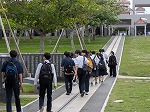3年生が沖縄に向けて、草野駅を出発しました。沖縄の天気はくもり。平和学習のため、これから平和祈念資料館へ向かいます。