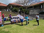 読谷村の入村式では、歌や踊りであたたかく迎えていただきました。各家庭での体験は、三線の演奏をしたり、琉球衣装を着たり、沖縄料理作りをさせていただきました。退村式では、三線の演奏にあわせてみんなで輪になって踊りました。3年生の生徒はみんな笑顔で元気です。これからトロピカルビーチでのマリン体験に向かいます。