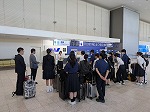 3年生が沖縄に向けて、草野駅を出発しました。沖縄の天気はくもり。平和学習のため、これから平和祈念資料館へ向かいます。