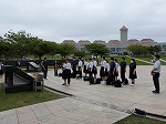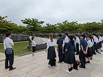 平和の礎でのセレモニーでは、みんなで作った千羽鶴を奉納し、平和宣言を発表しました。また真剣に平和祈念資料館を見学しました。このあと、読谷村での民泊体験に向かいます。3年生の生徒はみんな元気にしています。